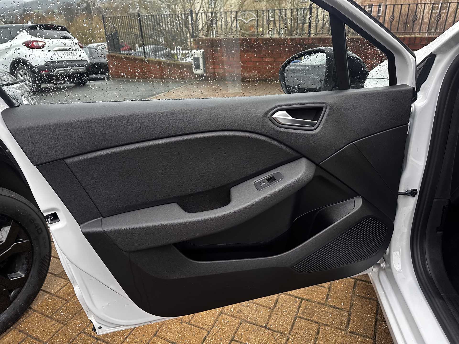 - Beige material interior roof lining and a pillar